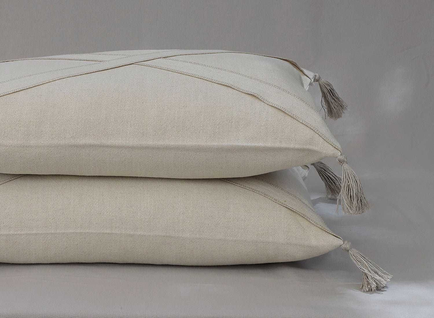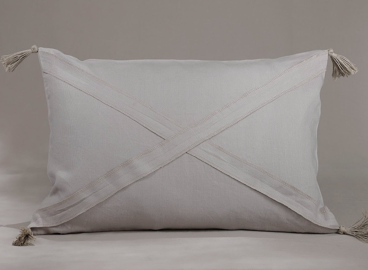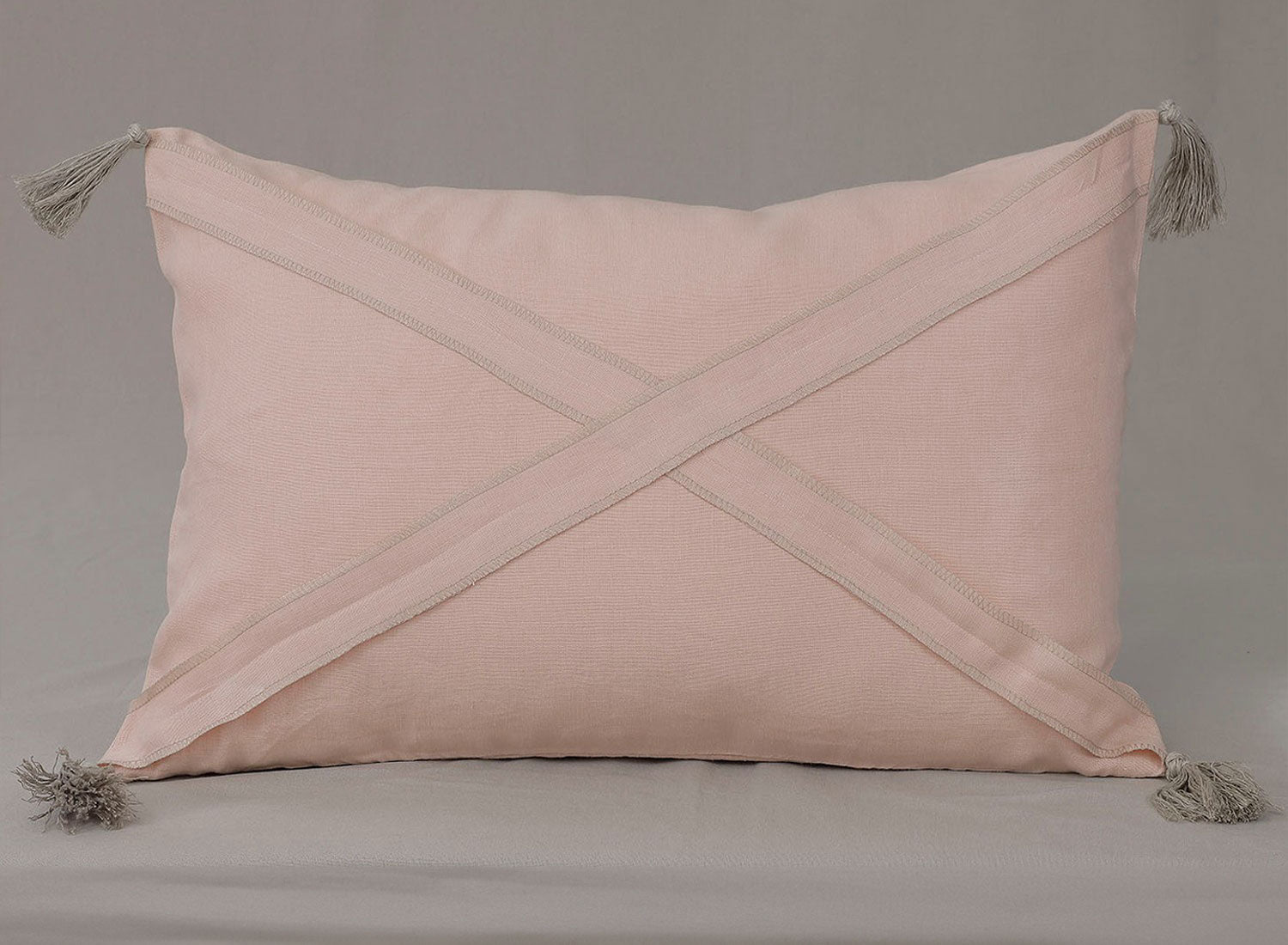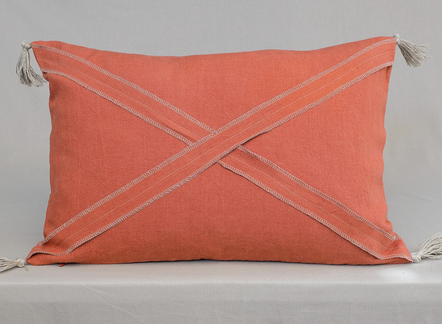 Cojín cruceta 100% lino con pompones relleno de plumas.