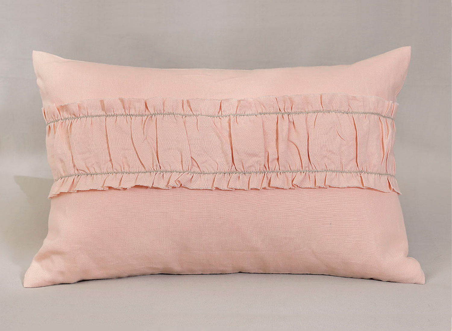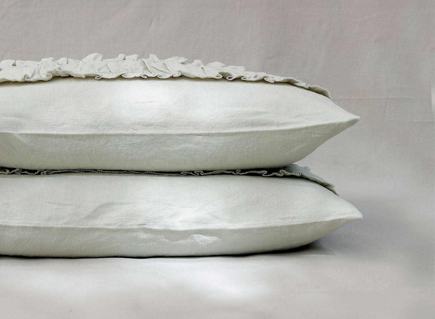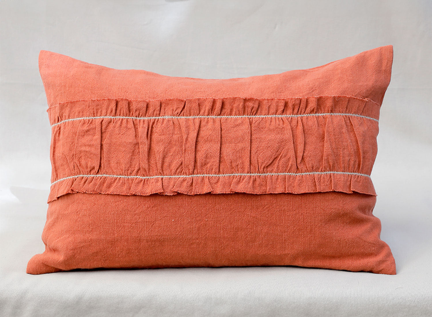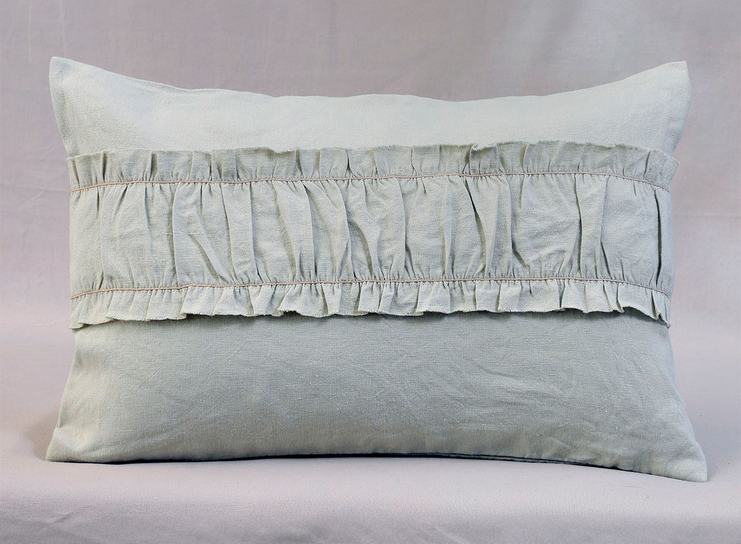 Cojin 100% lino pliegues y bordado con lino, relleno de plumas.