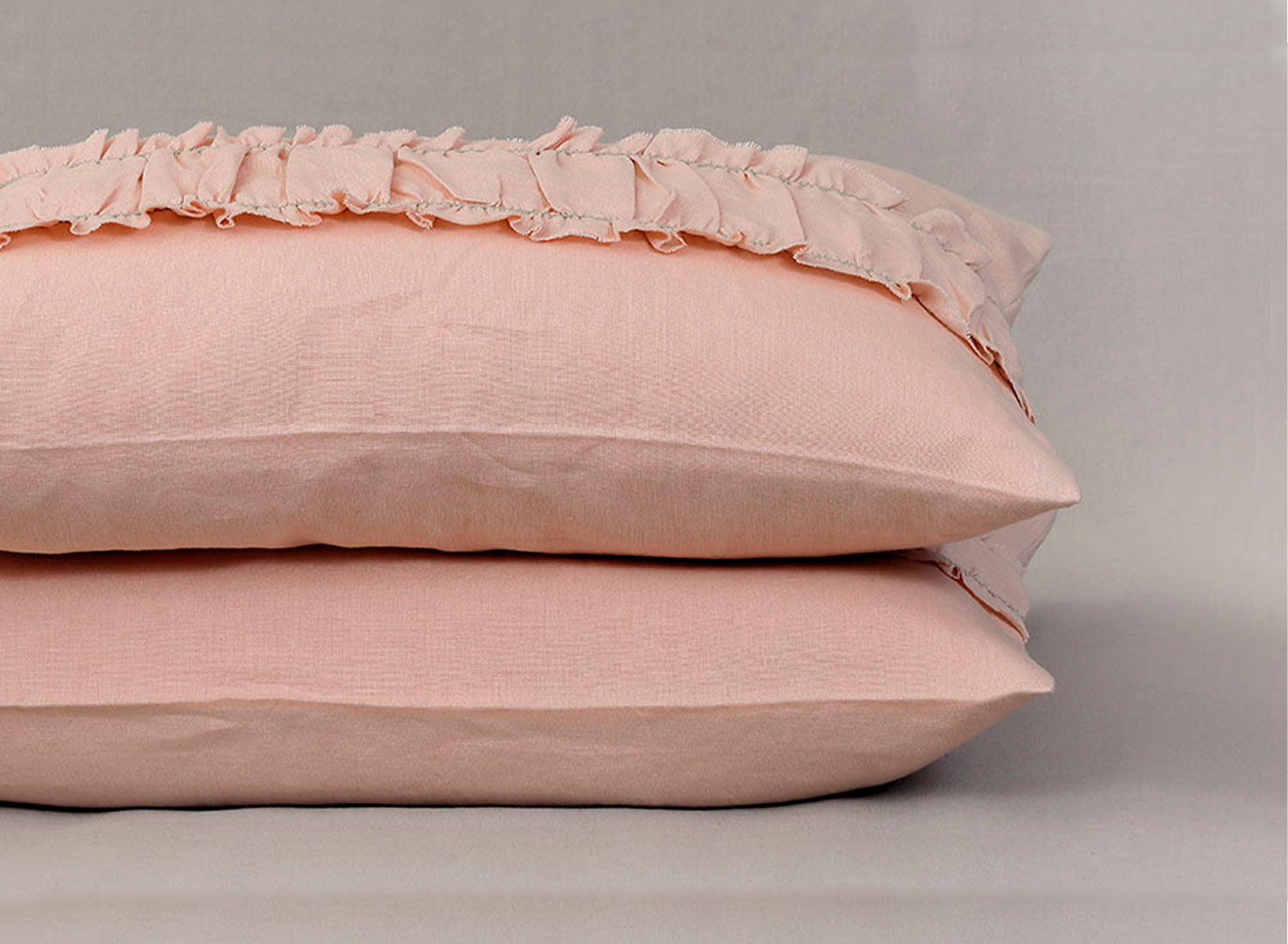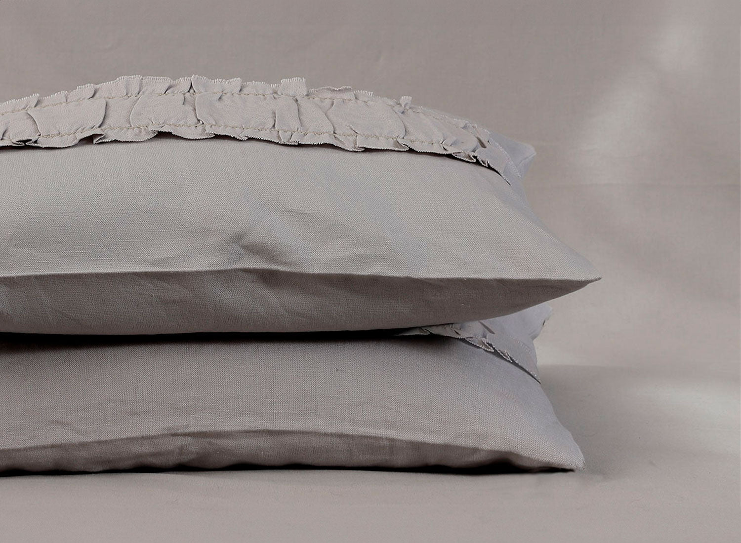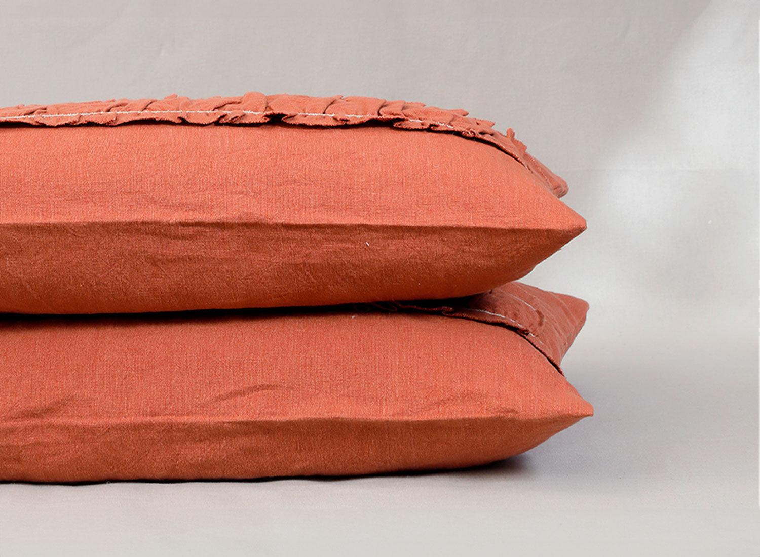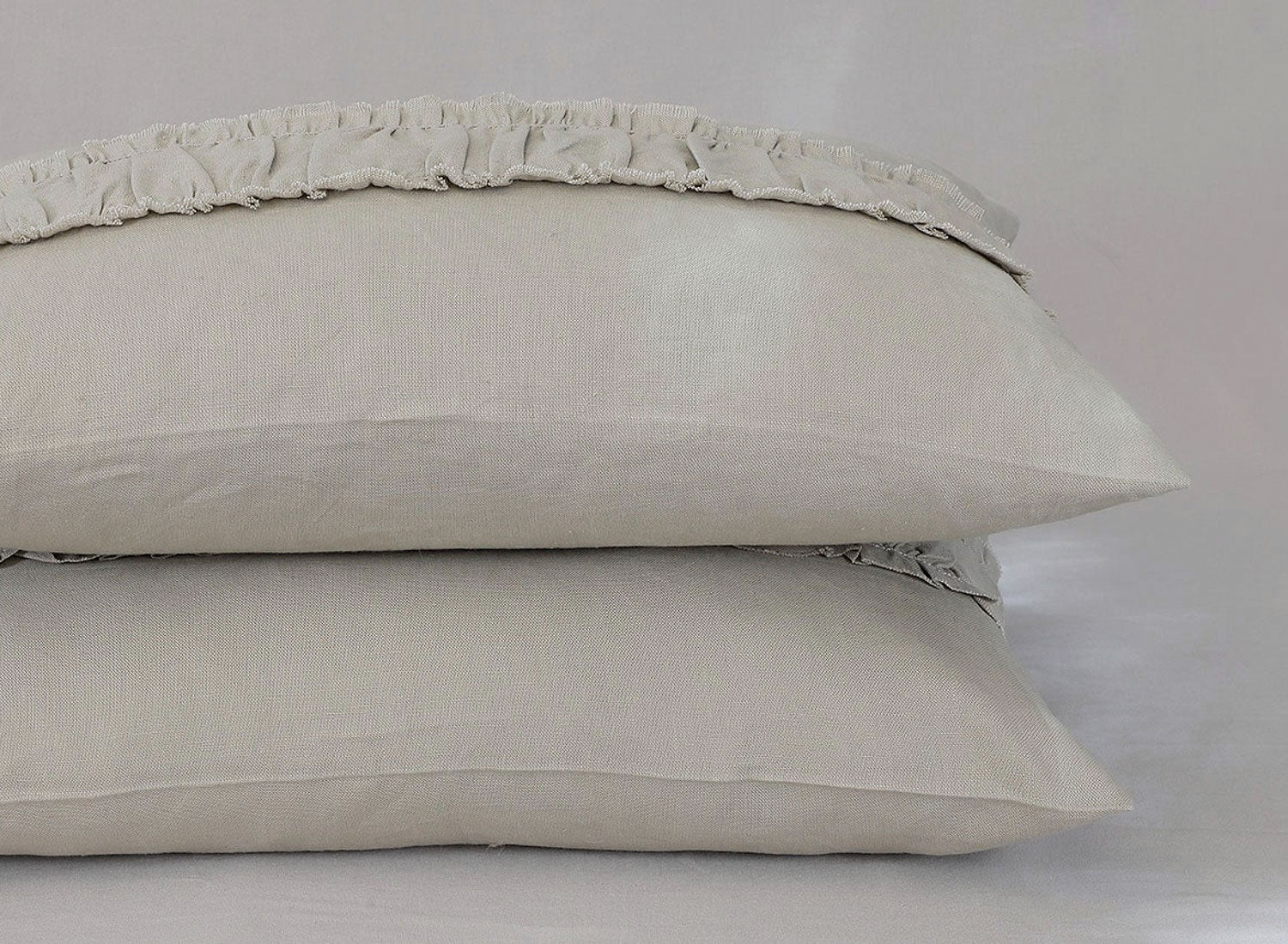 Cojin 100% lino pliegues y bordado con lino, relleno de plumas.